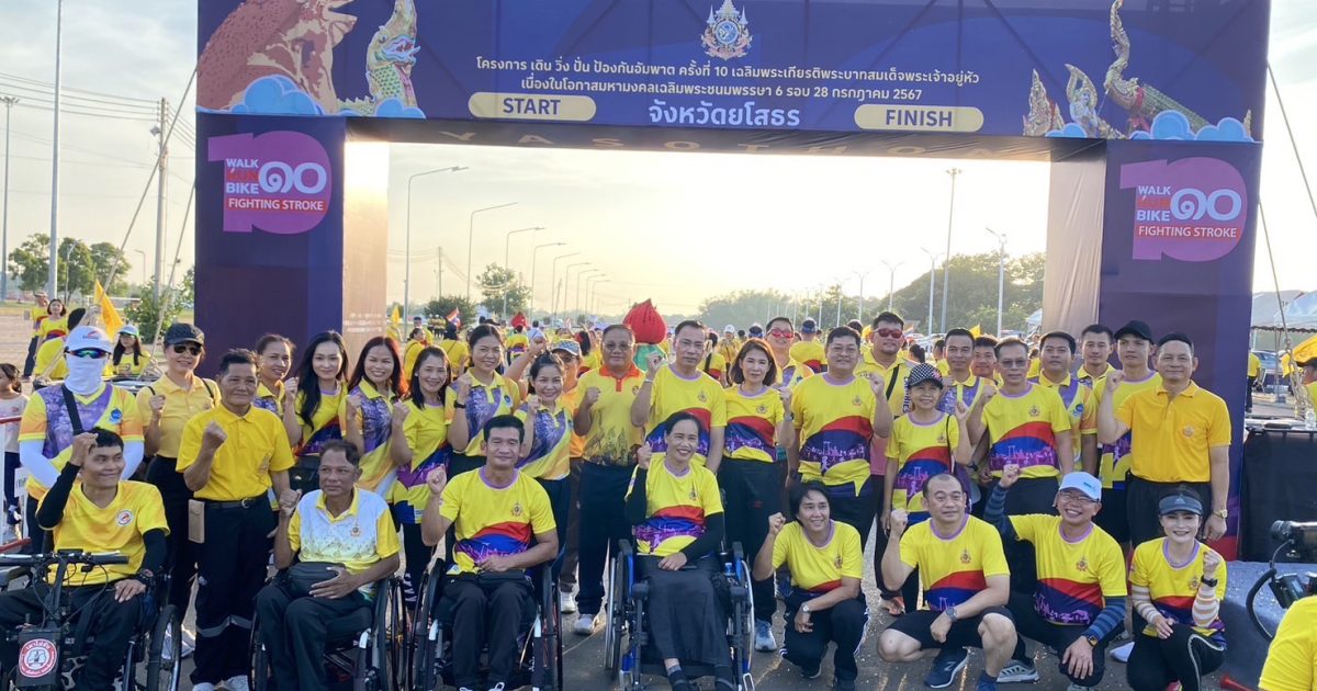 พ.ต.อ.ประสิทธิ์ เพชรรัตน์ ผกก.สภ.เมืองยโสธร เป็นตัวแทนตำรวจภูธรจังหวัดยโสธร พร้อมด้วยข้าราชการตำรวจจิตอาสาในสังกัดและหัวหน้าส่วนราชการอำเภอเมืองยโสธร ร่วมกิจกรรมจิตอาสา “เดิน วิ่ง ปั่น ”ป้องกันอัมพาต ครั้งที่ ๑๐ เฉลิมพระเกียรติพระบาทสมเด็จพระเจ้าอยู่หัว เนื่องในโอกาสพระราชพิธีมหามงคลเฉลิมพระชนมพรรษา ๖ รอบ ๒๘ กรกฎาคม ๒๕๖๗ ครั้งที่ ๒/๒๕๖๗ ณ บริเวณสวนสาธารณะบุ่งน้อย – บุ่งใหญ่ ตำบลในเมือง อำเภอเมือง จังหวัดยโสธร