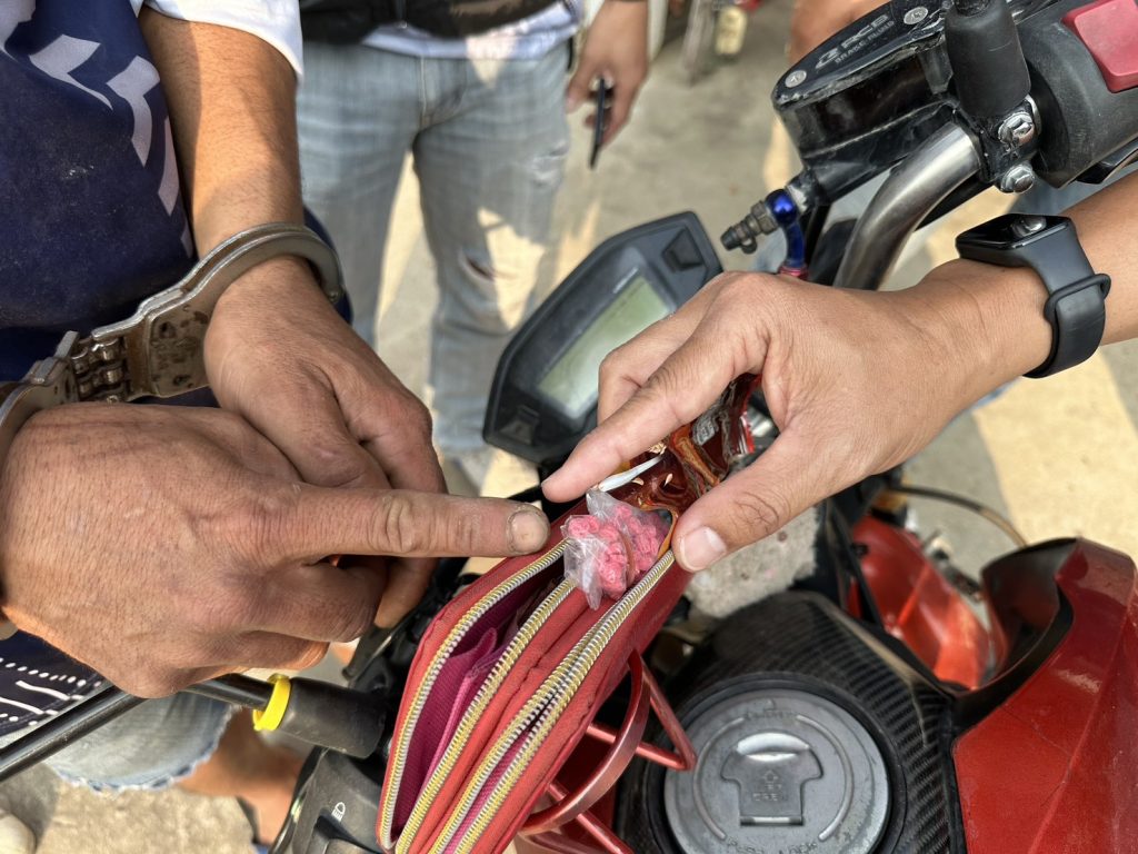 พร้อมด้วยของกลาง 1. ยาบ้าชนิดกลมแบนเม็ดสีแดง จำนวน 11 เม็ด บรรจุอยู่ในกล่องลูกอม ตราHALLS กล่องสีเทาแดง