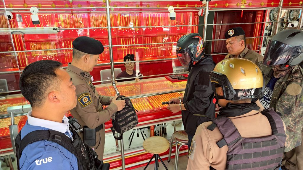 ซ้อมแผนเผชิญเหตุชิงทรัพย์ในร้านทอง 25 กุมภาพันธ์ 2569 โดย admin / ข่าวประชาสัมพันธ์,งานอำนวยการ,กุมภาพันธ์ 2568,สายงานป้องกันปราบปราบ,กุมภาพันธ์ 2568,สายงานสืบสวน,กุมภาพันธ์ 2568,สายงานสอบสวน,กุมภาพันธ์ 2568,สายงานจราจร,กุมภาพันธ์ 2568,ข่าวประชาสัมพันธ์,ข่าวภารกิจผู้บังคับบัญชา,ข่าวประชาสัมพันธ์,งานอำนวยการ,สายงานจราจร,สายงานป้องกันปราบปราบ,สายงานสอบสวน,สายงานสืบสวน 25ก.พ.69 เวลา 10.30 น.พ.ต.อ.ประสิทธิ์ เพชรรัตน์ ผกก.สภ.เมืองยโสธรพ.ต.ท.สุพจน์ สุนทรนนท์ รองผกก.ป.สภ.เมืองยโสธรพ.ต.ท.สิงหา สุตาสุข สวป.สภ.เมืองยโสธรพ.ต.ท.มงคล บุรีศรี สว.จร.สภ.เมืองยโสธรพ.ต.ต.ธนาวิทย์ สิทธินาม สว.สส.สภ.เมืองยโสธร พร้อมด้วยร้อยเวรป้องกันปราบปราม ฯ ,สายตรวจรถยนต์,สายตรวจรถจักรยานยนต์ ,สายตรวจจราจร,ชุดสืบสวน ,พนักงานสอบสวนเวร ทำการซ้อมแผนเผชิญเหตุชิงทรัพย์ในร้านทอง โดยใช้สถานที่ห้างร้านทองวังทองเยาวราช ถ.ประชาสัมพันธ์ ต.ในเมือง อ.เมือง จ.ยโสธร สามารถจับกุมคนร้ายได้ นำส่งพนักงานสอบสวนดำเนินคดีตามกฎหมายต่อไป FacebookFacebookXXLINELine