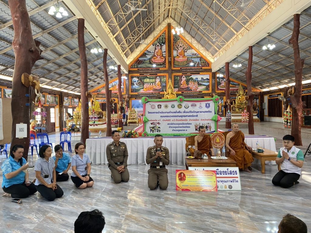 พ.ต.ท.สุพจน์ สุนทรนนท์ รอง ผกก.(ป.)ฯ พร้อมชุดปฏิบัติการชุมชนยั่งยืน สภ.เมืองยโสธร พร้อม ภาคีเครือข่าย ร่วมให้การต้อนรับ โดยได้ดำเนินกระบวนการ CBTx กิจกรรมศาสนาบำบัด ซึ่งได้รับความเมตตาจาก พระครูอรัญญเขตคณารักษ์ (หลวงปู่แป้) เจ้าอาวาสวัดบ้านหนองบก ตำบลหนองหิน อำเภอเมืองยโสธร จังหวัดยโสธร มาแสดงธรรมและให้แนวคิดให้กับผู้เข้ากระบวนการขุมชนบำบัด ณ ศูนย์ปฏิบัติการชุมชนยั่งยื่นวัดป่าบ้านค้อใต้ ตำบลค้อเหนือ อ.ฃำเภอเมืองยโสธร จังหวัดยโสธร