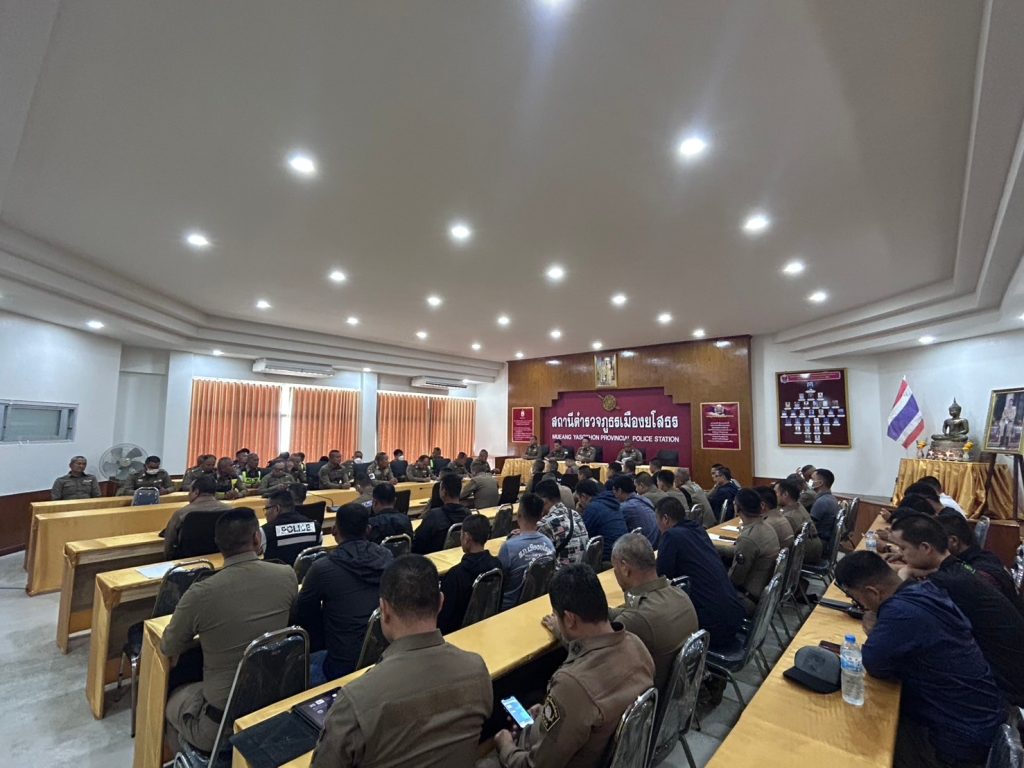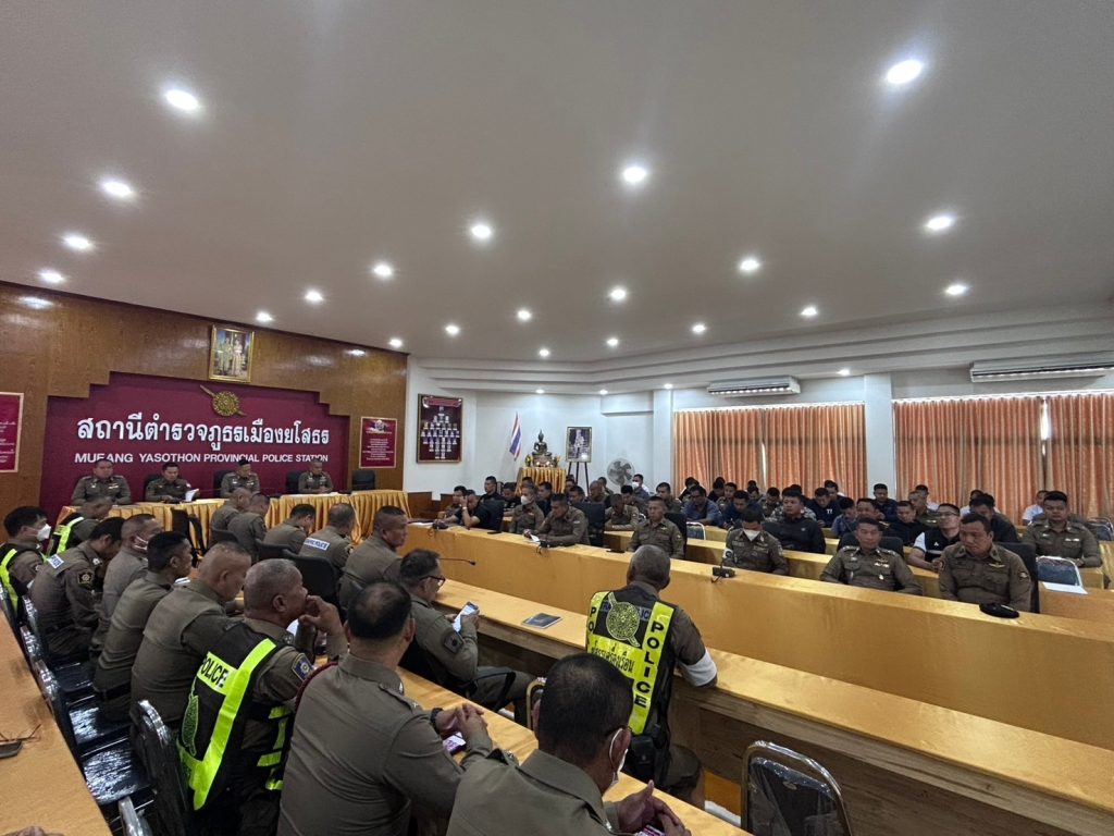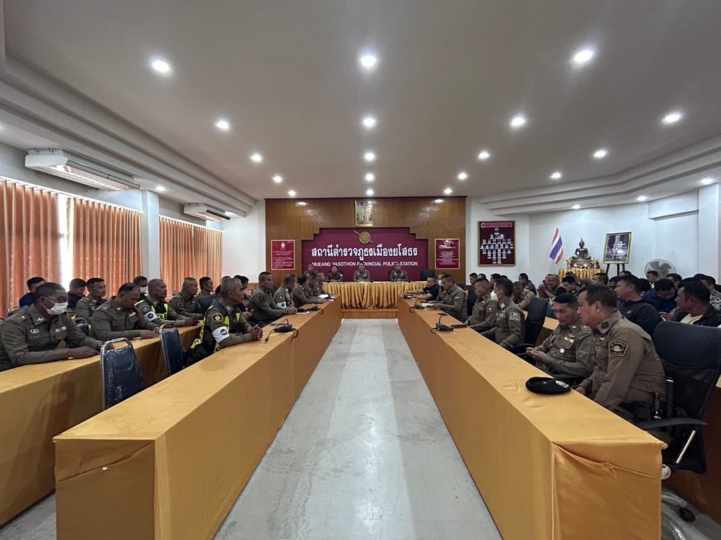 พ.ต.อ.ประสิทธิ์ เพชรรัตน์ ผกก.สภ.เมืองยโสธ เป็นประธานประชุมประจำเดือน สภ.เมืองยโสธร พร้อมด้วย พ.ต.ท.อธิภัทร ดาทวี รอง ผกก.ป.สภ.เมืองยโสธร , พ.ต.ท.ศรัณย์พงศ์ จักษุกรรฐ รอง ผกก.(สอบสวน)สภ.เมืองยโสธร , พ.ต.ท.ยุทธนา โพธิ์ทอง รอง ผกก.(สอบสวน)สภ.เมืองยโสธร , พ.ต.ท.สิงหา สุตาสุข สวป.สภ.เมืองยโสธร , พ.ต.ท.วุฒิพงษ์ สุดสีเลี้ยง สว.สส.สภ.เมืองยโสธร , พ.ต.ต.สมคิด ทองศรี สวป.(ชส.)สภ.เมืองยโสธร ข้าราชการตำรวจ สภ.เมืองยโสธร เข้าร่วมประชุมรับฟังนโยบายของผู้บังคับบัญชา ระดับ ตร. , ภ.๓ , ภ.จว.ยโสธร และประชุมขับเคลื่อนการประเมินคุณธรรมและความโปร่งใสในการดำเนินงานหน่วยงานภาครัฐ Integrity Transperrency Assessment : ITA ของสถานีตำรวจ เพื่อให้การปฎิบัติงาน การเร่งรัดงานในภาพรวมของ สภ.เมืองยโสธร เป็นไปด้วยความเรียบร้อย และร่วมรับประทานอาหารกลางวัน เพื่อเป็นการช่วยเหลือ แบ่งเบาภาระค่าครองชีพให้แก่ผู้ใต้บังคับบัญชา และขวัญกำลังใจในการปฏิบัติหน้าที่ ณ ห้องประชุม ชั้น ๔ สภ.เมืองยโสธร