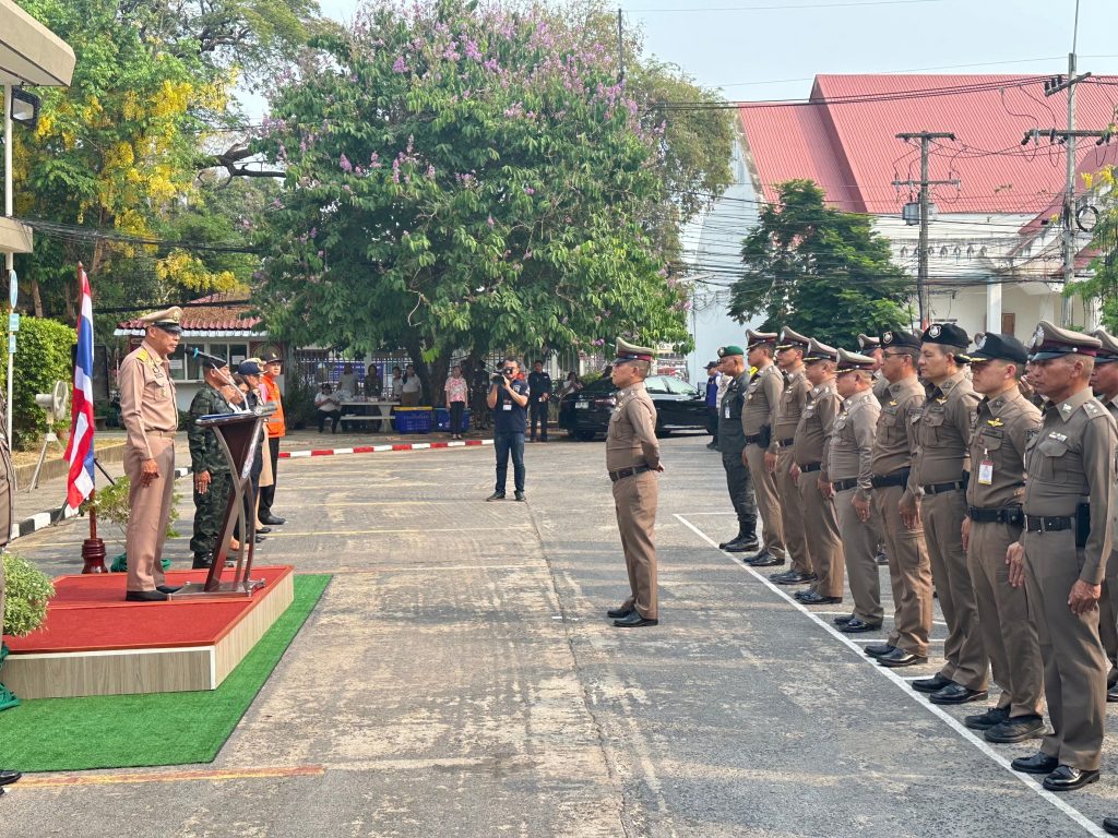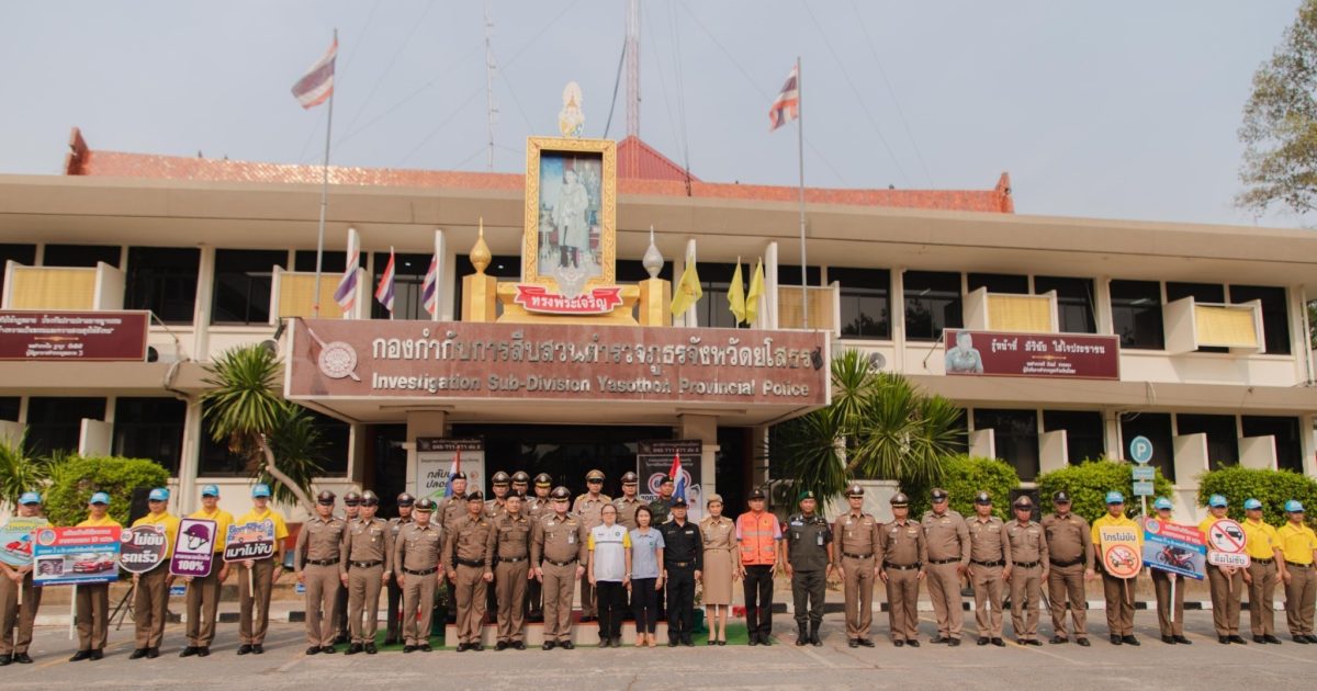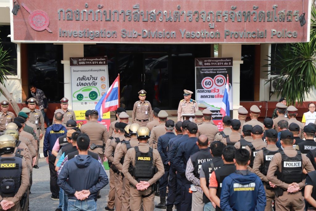 พ.ต.ต.วุฒิพงษ์ สุดสีเลี้ยง สว.สส.สภ.เมืองยโสธร ข้าราชการตำรวจ 11 สภ.ฯ ในสังกัด พร้อมภาคีเครือข่าย ปล่อยแถวกำลังพลเพื่อร่วมออกปฎิบัติหน้าที่ในการอำนวยความสะดวกการจราจร ป้องกันและลดอุบัติเหตุทางถนนและรักษาความสงบเรียบร้อย ในช่วงเทศกาลสงกรานต์ พ.ศ. 2567 โดยมี นายชรินทร์ ทองสุข ผู้ว่าราชการจังหวัดยโสธร เป็นประธานในพิธี