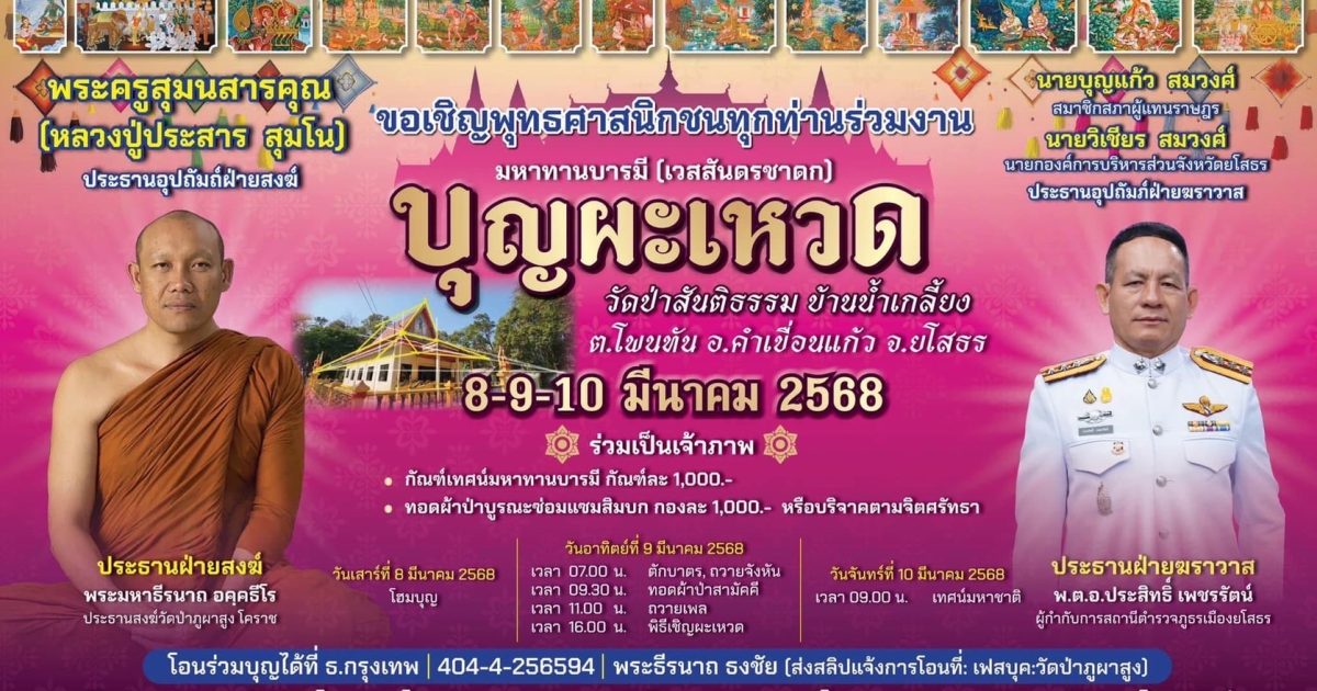 “ผกก.สภ.เมืองยโสธร” พาลูกน้องร่วมงานบุญผะเหวดและทอดผ้าป่าสามัคคีบูรณะซ่อมแซมสิมบก