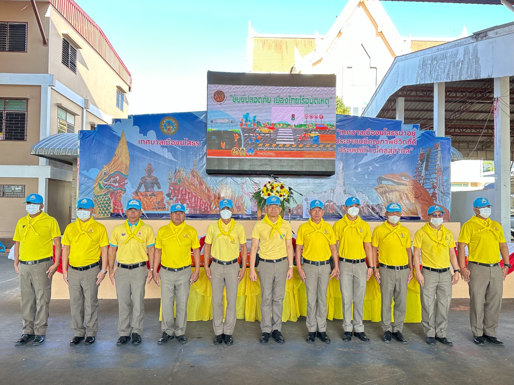 จิตอาสา สภ.เมืองยโสธร ร่วมพิธีเปิดศูนย์ปฏิบัติการป้องกัน และลดอุบัติเหตุทางถนช่วงเทศกาลปีใหม่ พ.ศ. ๒๕๖๗ จังหวัดยโสธร กิจกรรมรณรงค์เนื่องในวันโลกรําลึกถึงผู้สูญเสียจากอุบัติเหตุทางถน (World Day of Remembrance for Road Traffic Victims) ประจําปี พ.ศ. ๒๕๖๖ ณ บริเวณอาคารโดมเทศบาลเมืองยโสธร อำเภอเมือง จังหวัดยโสธร โดยมี นายชรินทร์ ทองสุข ผู้ว่าราชการจังหวัดยโสธร เป็นประธานในพิธี หลังจากนั้นได้ร่วมทำกิจกรรมจิตอาสา ทาสี ถนนขาว-แดง บริเวณริมถนน รอบๆ เทศบาลเมืองยโสธร