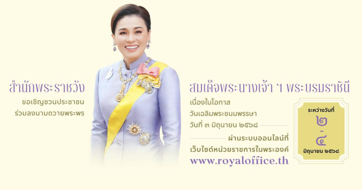 พิธีถวายเครื่องราชสักการะ วางพานพุ่ม และพิธีจุดเทียนถวายพระพรชัยมงคล สมเด็จพระนางเจ้าสุทิดา พัชรสุธาพิมลลักษณ พระบรมราชินี 3 มิถุนายน 2568