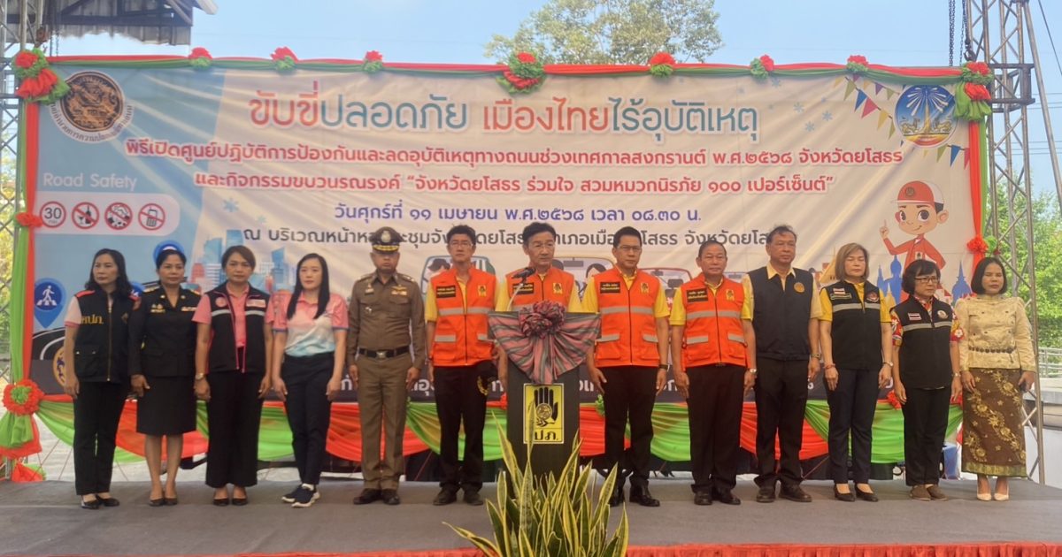 พ.ต.อ.ประสิทธิ์ เพชรรัตน์ ผกก.สภ.เมืองยโสธร พร้อมด้วยข้าราชการตำรวจในสังกัด , ทหาร , สำนักงานป้องกันสาธารณภัยจังหวัดยโสธร , สาสาธารณสุขจังหวัดยโสธร, สำนักงานขนส่งจังหวัดยโสธร , และหน่วยงานที่มีส่วนเกี่ยวข้อง ร่วมพิธีเปิดศูนย์ปฏิบัติการป้องกันและลดอุบัติเหตุทางถนนช่วงเทศกาลสงกรานต์ พ.ศ.๒๕๖๘ จังหวัดยโสธร และกิจกรรมรณรงค์ “จังหวัดยโสธร ร่วมใจ สวมหมวกนิรภัย ๑๐๐ เปอร์เซ็น” โดยมี นายชาญชัย ศรศรีวิชัย ผู้ว่าราชการจังหวัดยโสธร เป็นประธานฯ