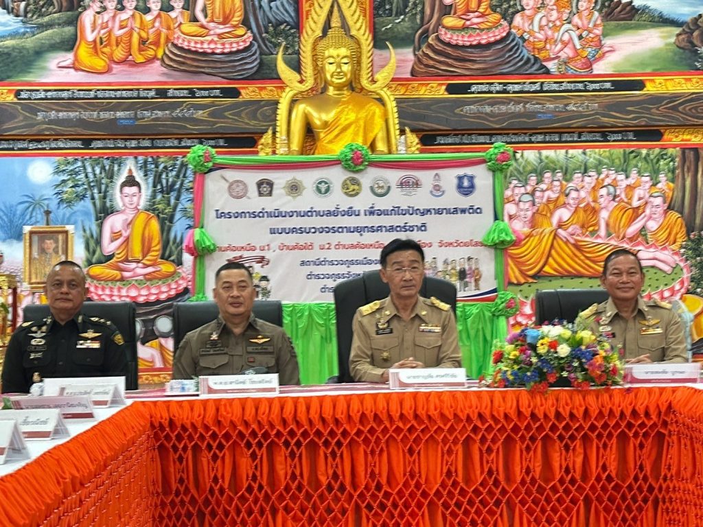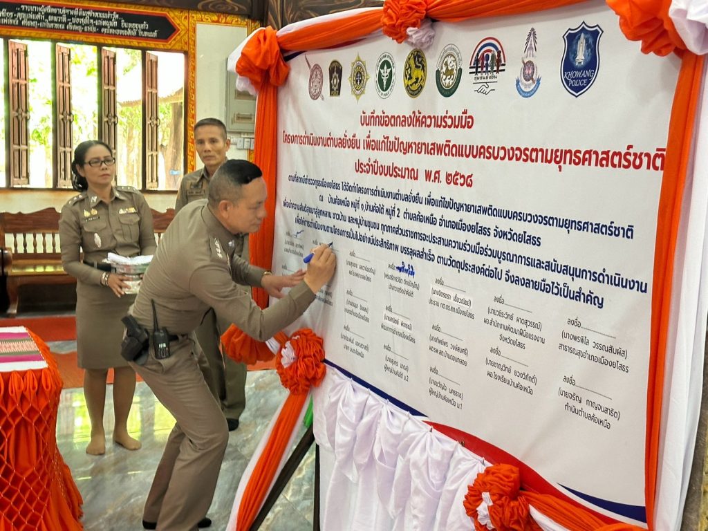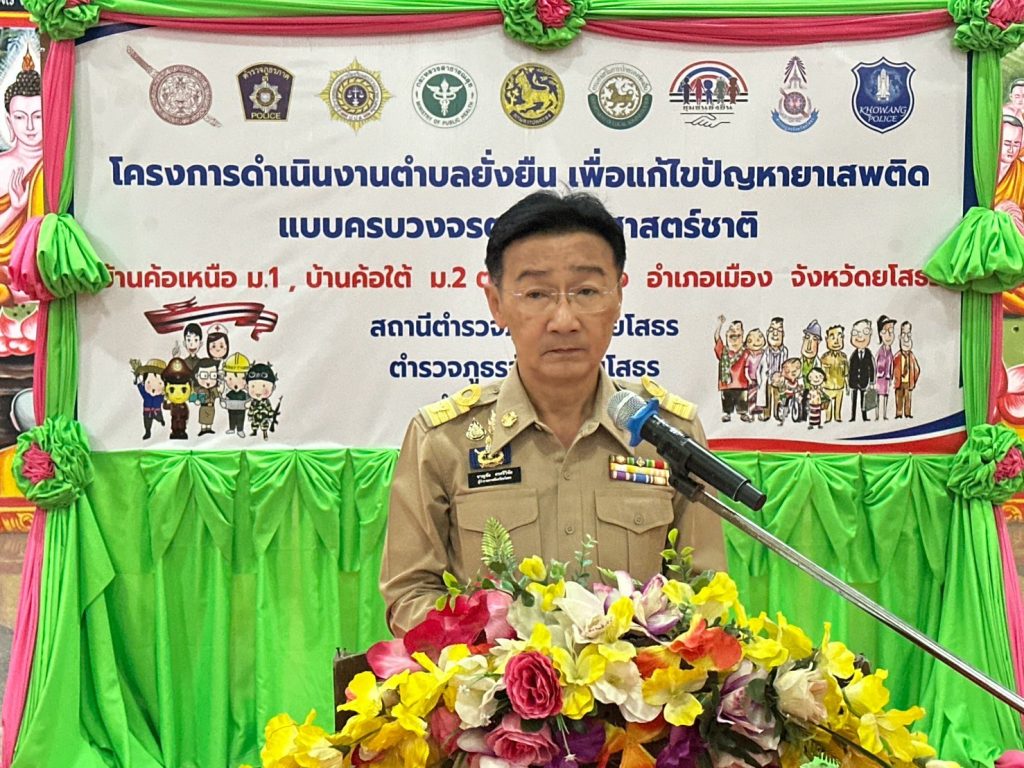 พล.ต.ต.ภิรมย์ สวนทอง ผบก.ภ.จว.ยโสธร มอบหมายให้ พ.ต.อ.สานิตย์ ไชยสถิตย์ รอง ผบก.ภ.จว.ยโสธร , พ.ต.อ.ประสิทธิ์ เพชรรัตน์ ผกก.สภ.เมืองยโสธร , พ.ต.ท.ศรัณย์พงศ์ จักษุกรรฐ รอง ผกก.(สอบสวน)สภ.เมืองยโสธร , พ.ต.ต.สมคิด ทองศรี สวป.(ชส.)สภ.เมืองยโสธร ,ว่าที่ พ.ต.ต.ธนาวิทย์ สิทธินาม สว.สส.สภ.เมืองยโสธร , ชุด ชมส.สภ.เมืองยโสธร ร่วมกับ หัวหน้าส่วนราชการระดับจังหวัดและอำเภอ , นายวิเชียร สุดาทิพย์ นายอำเภอเมืองยโสธร , นางพรพิไล วรรณสัมผัส สาธารณสุขอำเภอเมืองยโสธร , นายจรัญ กาญจนสาธิต กำนันตำบลค้อเหนือ , นายประพันธ์ ยอดสวาท นายก อบต.ค้อเหนือ ผู้นำชุมชน ภาคีเครือข่าย ผู้มีส่วนเกี่ยวข้อง ร่วมพิธีเปิดและลงนามบันทึกข้อตกลงให้ความร่วมมือ โครงการดำเนินงานตำบลยั่งยืนเพื่อแก้ไขปัญหายาเสพติดแบบครบวงจรตามยุทธศาสตร์ชาติ ประจำปีงบประมาณ พ.ศ. ๒๕๖๘ สถานีตํารวจภูธรเมืองยโสธร โดยมี นายชาญชัย ศรศรีวิชัย ผู้ว่าราชการจังหวัดยโสธร เป็นประธานในพิธี