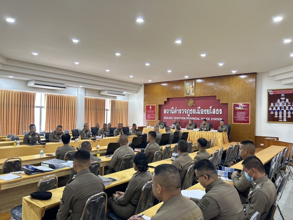 พ.ต.อ.สมยศ ศรีเรือง รอง ผบก.กต.๓ ,พ.ต.อ.อรุณศักดิ์ วรรณโกษิตย์ ผกก.ฝสต.๒.กต.๓ ,พ.ต.ท.อัศวิน จิตรสวัสดิ์ รอง ผกก.ฝสต.๒.กต.๓, พ.ต.ท.นัฏฐ์ โกมุทธพงศ์ สว.ฝสต.๒.กต.๓, พ.ต.ท.ยศวัฒน์ โรจน์พงศ์เกษม สว.ฝสต.๒.กต.๓ ,ด.ต.หญิง ชญานิศ ยุทธมานพ ผบ.หมู่ ฝสต.๒.กต.๓ เดินทางมาตรวจราชการประจำปีงบประมาณ ๒๕๖๘ เพื่อให้เป็นไปตามความเรียบร้อยและบรรลุวัตถุประสงค์ตามแผนการตรวจราชการของ ตร. ณ ห้องประชุมชั้น ๔ สถานีตำรวจภูธรเมืองยโสธร