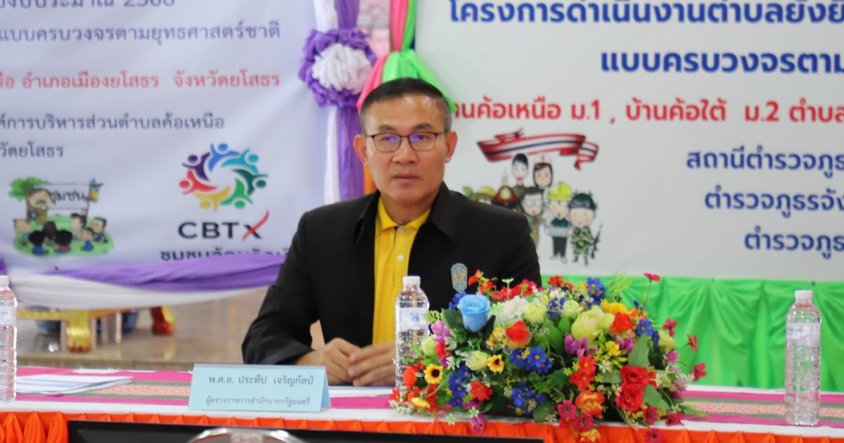 พ.ต.ต.สมคิด ทองศรี สวป.(ชส.)สภ.เมืองยโสธร และเจ้าหน้าที่ชุด ชมส.สภ.เมืองยโสธร ร่วมกับ ภาคีเครือข่าย สำนักงานสาธารณสุขจังหวัดยโสธร รพ.สต. พื้นที่ ต.ค้อเหนือ ,อำเภอเมืองยโสธร กำนัน/ผู้ใหญ่บ้าน ,อสม. , และผู้เข้ารับการบำบัดยาเสพติดตามโครงการฯ ร่วมให้การต้อนรับ พ.ต.อ.ประทีป เจริญกัลป์ ผู้ตรวจราชการสำนักนายกรัฐมนตรี เขตตรวจราชการที่14 และผู้ตรวจราชการกระทรวง พร้อมคณะ ได้มีกำหนดการตรวจราชการแบบบูรณาการของผู้ตรวจราชการ ประจำปีงบประมาณ พ.ศ.2568 และได้กำหนดพื้นที่เป้าหมายในการลงพื้นที่ตรวจเยี่ยมติดตามการป้องกันและแก้ไขปัญหายาเสพติดและบุหรี่ไฟฟ้าจังหวัดยโสธร ณ วัดป่าบ้านค้อใต้ บ้านค้อใต้ หมู่ที่ 2 ต.ค้อเหนือ อ.เมืองยโสธร จังหวัดยโสธร