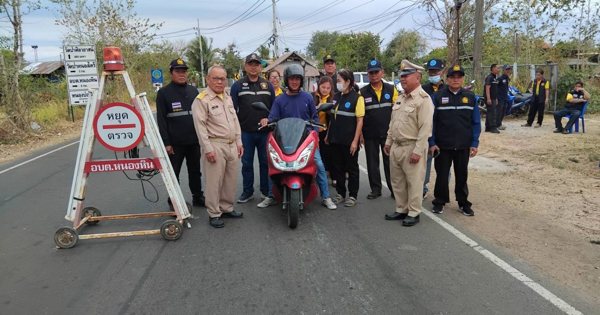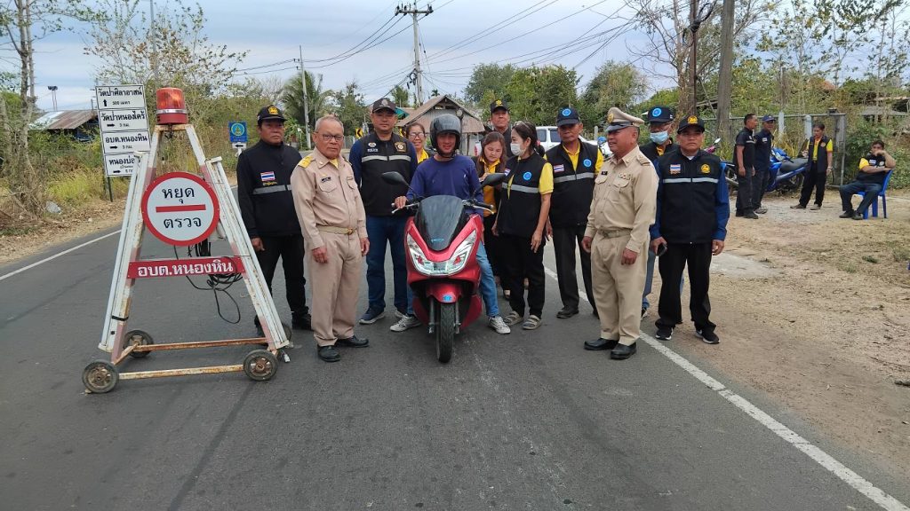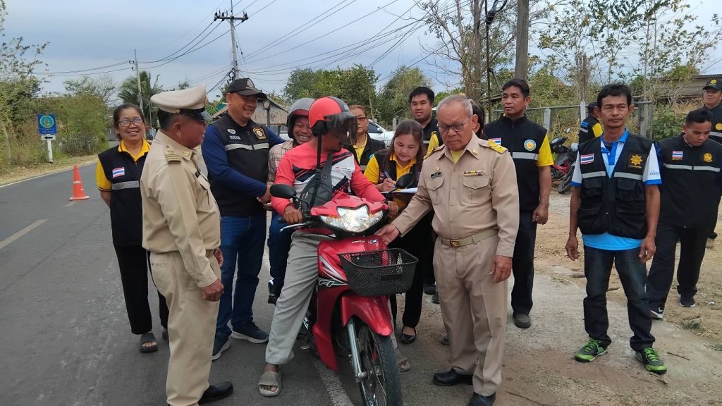 สายตรวจตำบลหนองหิน ตั้งด่านรณรงค์สวมหมวกนิรภัย