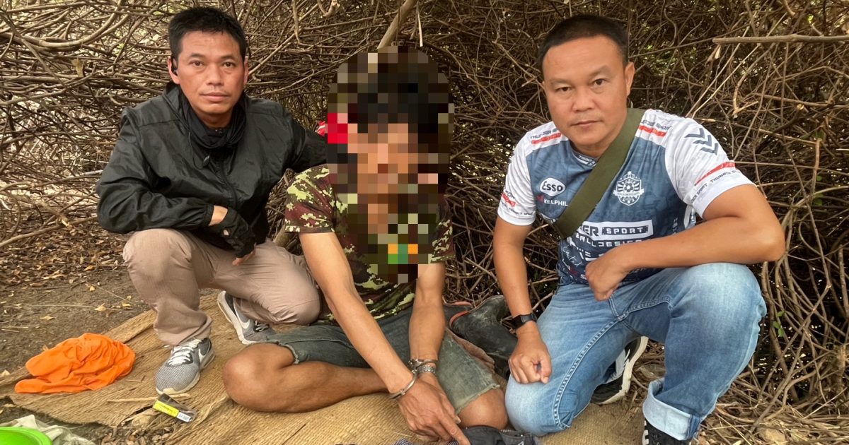 ตำแหน่งที่พบของกลาง 1. ซุกซ่อนอยู่ในถุงย่ามสะพายลายครามพบวางอยู่บริเวณจุดที่พบตัวผู้ต้องหา ขณะตรวจค้น/จับกุม