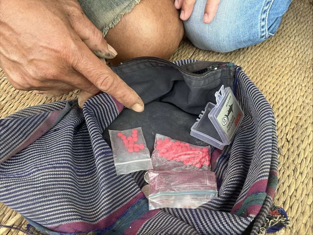 พร้อมด้วยของกลาง 1.ยาบ้าชนิดกลมแบนเม็ดสีแดง จำนวน 78 เม็ด ยาบ้าชนิดกลมแบนเม็ดสีเขียว จำนวน 1 เม็ด บรรจุอยู่ในถุงพลาสติกใสแบบดึงเปิดกดปิด
