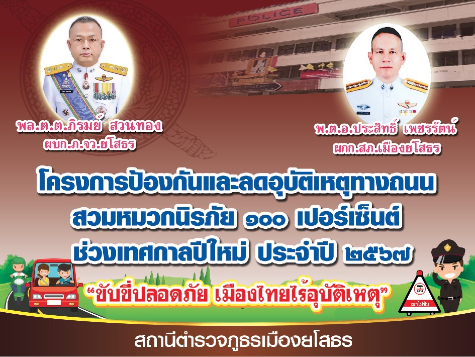 27 ธันวาคม 2566 ภายใต้อำนวยการสั่งการของ พล.ต.ต.ภิรมย์ สวนทอง ผบก.ภ.จว.ยโสธร มอบหมายให้ พ.ต.อ.สานิต