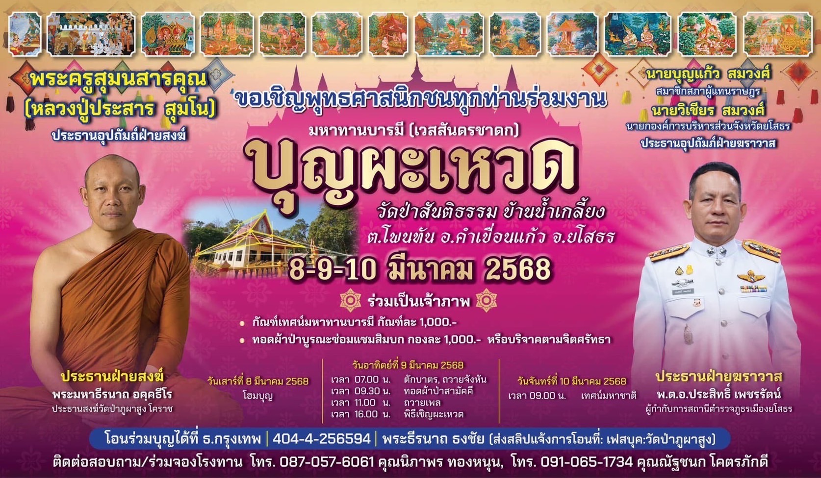9 มีนาคม 2568 พ.ต.อ.ประสิทธิ์ เพชรรัตน์ ผกก.สภ.เมืองยโสธร (เป็นประธานฝ่ายฆราวาส) คุณสุภาภรณ์ เพชรรั