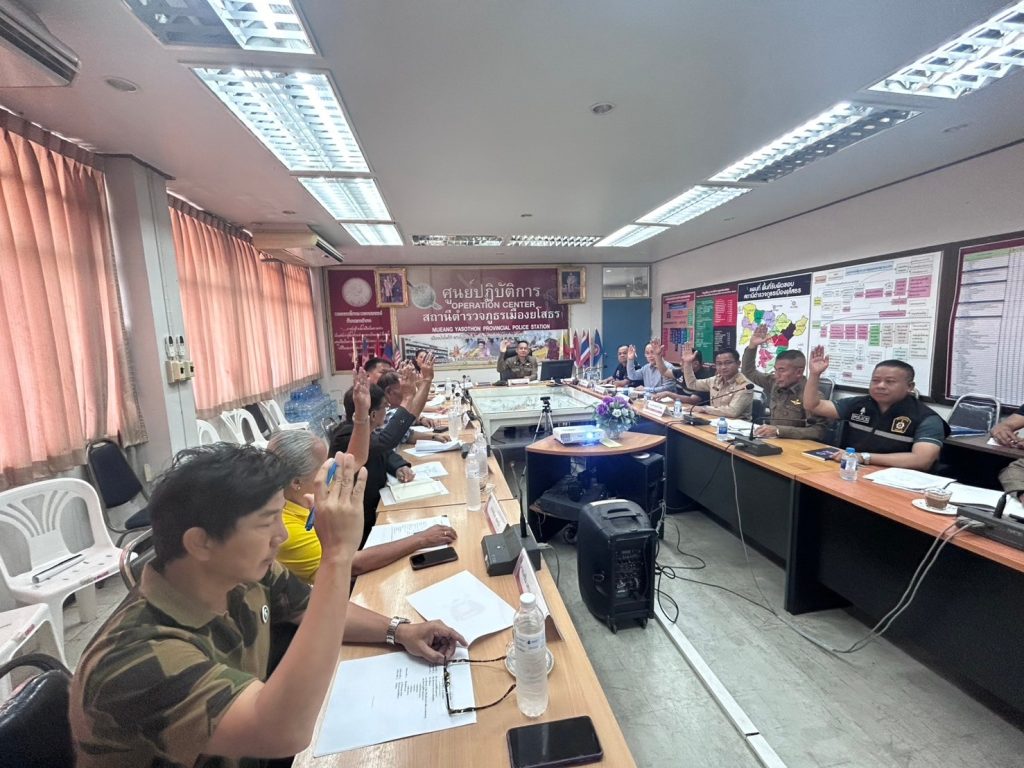 วันที่ 16 ตุลาคม 2567 เวลา 13.30 น. นางจิตตรา เชื้อวณิชย์ ประธาน กต.ตร.สภ.เมืองยโสธร เป็นประธานการประชุมประจำเดือน ตุลาคม 2567 โดยมี พ.ต.อ.ประสิทธิ์ เพชรรัตน์ ผกก.สภ.เมืองยโสธร , พ.ต.ท.ศรัณย์พงศ์ จักษุกรรฐ รอง ผกก.(สอบสวน)ฯ , พ.ต.ท.อธิภัทร ดาทวี รอง ผกก.ป.ฯ, พ.ต.ท.วรวุทธิ์ ท่านมุข รอง ผกก.สส.ฯ พร้อมด้วย คณะ กต.ตร.สภ.เมืองยโสธร ข้าราชการตำรวจผู้เกี่ยวข้อง เข้าร่วมประชุม ณ ห้องประชุมชั้น 2 สภ.เมืองยโสธร